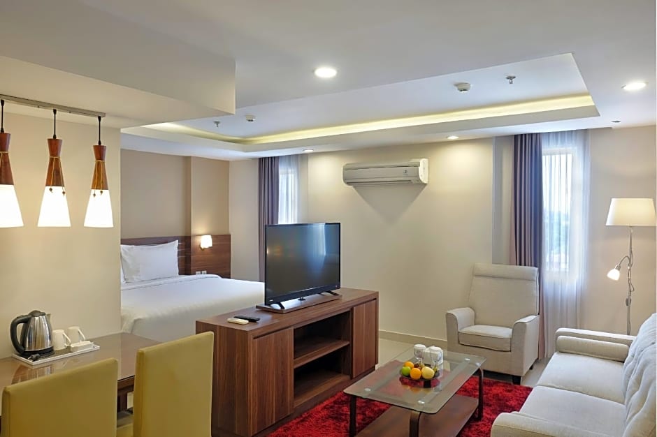 This spacious suite comes with 1 living room, 1 separate bedroom and 1 bathroom with a bath and free toiletries. The air-conditioned suite features a flat-screen TV with cable channels, soundproof walls, a mini-bar, a coffee machine as well as city views. The unit has 2 beds.